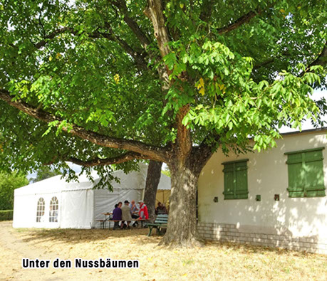 Unter den beiden Nußbäumen und im Zelt wurde gefachsimpelt, gelacht und das Essen gelobt. Die Eintracht Frankfurt und der FSV, die Wühlmäuse und die lange Regenfreie Wetterphase, und auch die ein oder andere humorige Anekdote wurden eingehend und auch tiefgründig betrachtet.